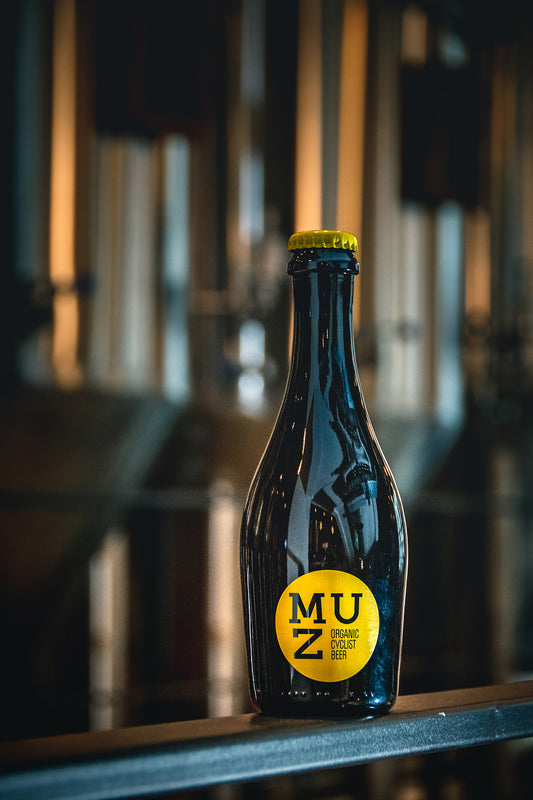 En référence au petit sac de toile que les cyclistes saisissent pour se ravitailler, se nourrir. MU-Z répond avec un clin d’œil à ce besoin primaire du corps et espère également éveiller, réveiller, nourrir votre esprit. Pensée, élaborée, créée par Dominique Meessens un cycliste épicurien de nature et brassée de manière artisanale (petits brassins de 3.000 bouteilles) par le maître brasseur de La Manufacture Urbaine de Charleroi.